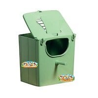Nid extérieur en plastique avec une grande ouverture pour oiseaux exotiques.